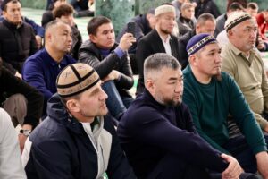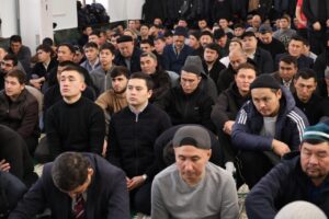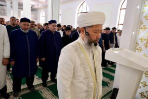 Жұма намазынан кейін ҚМДБ Төрағасы Алматы облыстық орталық мешітінің жамағатымен бірге дұға жасап, Алла Тағаладан еліміз бен жеріміздің тыныштығын, амандығын тіледі.