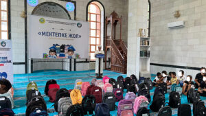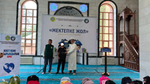 Жылдағы дәстүр бойынша ұйымдастырылған “Мекктепке жол” қайырымдылық шарасы барысында аудандағы 100 оқушыға мектепке қажетті оқу жабдықтары салынған сөмке таратылды. Дәптер, қалам, сызғыш және тағы басқа қажеттіліктерге толы жаңа сөмке алған оқушылар мен олардың ата-аналары мешіт қызметкерлеріне және демеушілерге алғыстарын жеткізді.