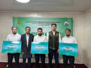 Нәтижесінде І орынды «Мәметәлі» мешітінің ұстазы Төреханов Мұхамед иеленіп (70 мың теңге), ІІ орын (50 мың теңге) Көккайнар ауылдық №2 мешітінің имамы Нүсіпбеков Еркін, ІІІ орынды (30 мың теңге) «Сәбденұлы Өтеген батыр» мешітінің наиб имамы Тамашбеков Марсель қанағат тұтты.