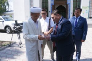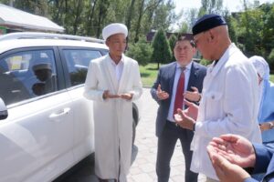 Қасиетті жұма күні өткен игі шарада аудан әкімі жамағатты жұма намазымен құттықтап, мешіттің бас имамы Дархан Аманұлы Тәңірбергенге жаңа көліктің кілтін салтанатты түрде тапсырды.