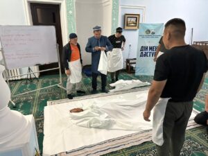 Балқаш аудандық орталық “Оспанқожа ата” мешітінде «Дін мен дәстүр» аясында тағылымды іс-шара өтті. «Қамқор – Шарапат» салттық қызмет көрсету орталығының бастамасымен мешіт жамағатына мәйітті жуындыру мен кебіндеу рәсімі шариғат негізінде түсіндірілді.
