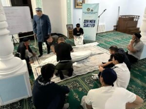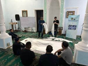 Ер азаматтарға мәйітті жуу, кебіндеу, орау тәртіптері іс жүзінде көрсетіліп, әр кезеңнің мән-маңызы жан-жақты баяндалды. Бас имам шариғат талаптарына сай кебін дайындау, ер мен әйел киімінің айырмашылықтары, өлшемі мен атаулары туралы толық мәлімет берді. Сонымен қатар, өлім мен өмірдің мәні, ысырапшылдықтан сақтану жайлы насихат айтылды.