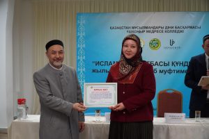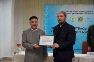 Кездесу барысында наиб мүфти ұстаздық қызметтегі әдеп негіздері мен тәрбиенің маңыздылығы туралы айтты. ҚМДБ-ның төрағасы, Бас мүфти Наурызбай қажы Тағанұлының сәлемін жеткізіп медресенің 4 ұстазына діни білім беру саласында ерен еңбек еткені үшін алғыс хат табыстады.