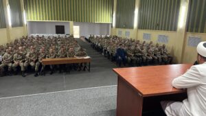 Кездесу аясында имам сарбаздарға Отанға деген сүйіспеншілікті арттыру, жат діни ағымдардың арбауына түсіп қалмаудың жолдары, деструктивті идеологиялардан сақтану және олардың алдын алу шаралары туралы кеңінен баяндады. Сонымен қатар, қоғамның дертіне айналған құмар ойындарының зияны жайлы да нақты деректер келтіріп, жас буынды одан аулақ болуға шақырды.