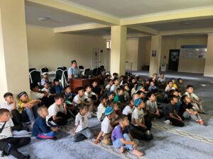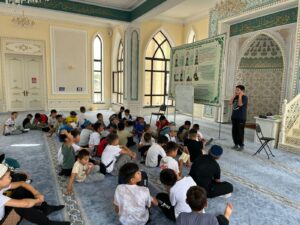Жазғы демалыс уақытында діни білім алуға ниеттенген балаларға дәріс жүруде. мешіт ұстаздары балаларды жас ерекшеліктеріне қарай топтарға бөліп, дәріс кестелерімен ұйымдастырылуда.