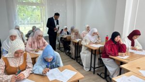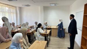 Емтихан екі күнге бөлініп ұйымдастырылды: алғашқы күні ұл балалар сынақ тапсырса, келесі күні қыздар бөлімінде емтихан өткізілді. Қыздар бөліміндегі қабылдау сынағына ҚМДБ Діни оқу-ағарту бөлімінің маманы Жаңабай Мұратұлы арнайы қатысып, емтихан қабылдау процесін жүргізді.