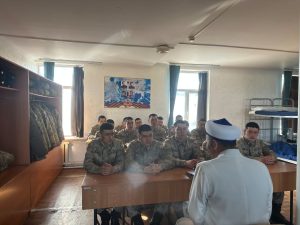 ЖАС САРБАЗДАРҒА “ОТАНДЫ СҮЮ ИМАННАН” ТАҚЫРЫБЫНДА НАСИХАТ ЖҮРГІЗІЛДІ