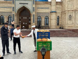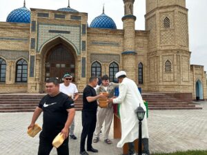 Аудандық орталық «Оспанқожа ата» мешітінің бас имамы Нұрдәулет Тоқанұлы Турежановтың ұйымдастыруымен және қайырымды кәсіпкердің қолдауымен жұма күні 100 нан тегін таратылып, жамағат пен мұқтаж жандарға үлестірілді.